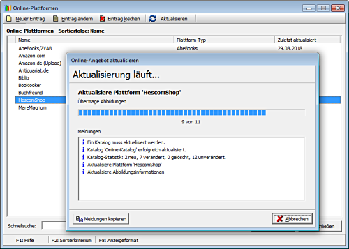 - Ihre Daten für alle gängigen Internetpools (Abebooks/ZVAB, Antiquariat.de, Booklooker, Amazon,…) exportieren.