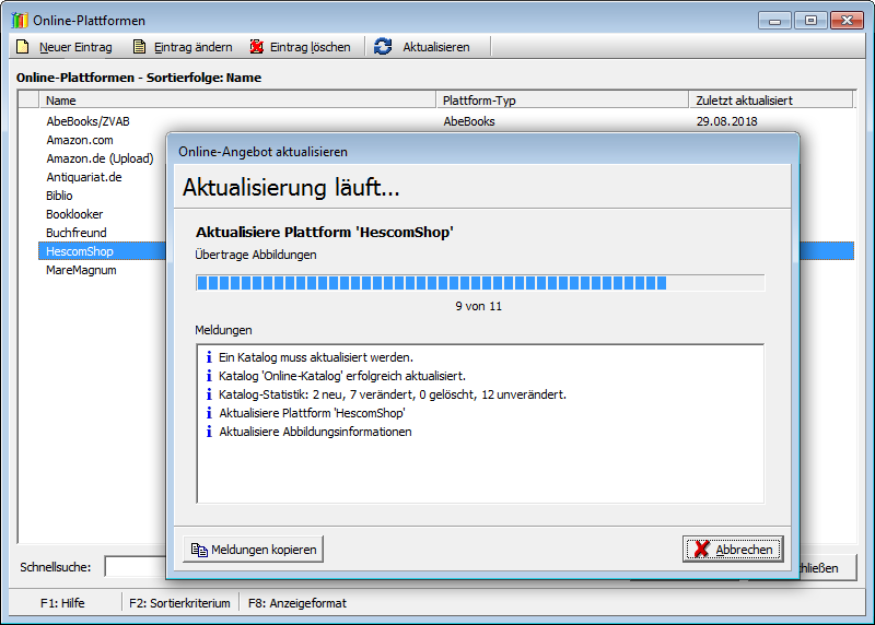 - Ihre Daten für alle gängigen Internetpools (Abebooks/ZVAB, Antiquariat.de, Booklooker, Amazon,…) exportieren.