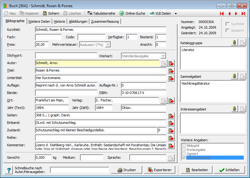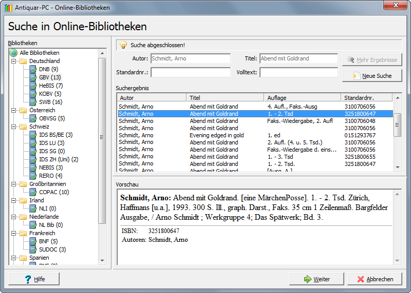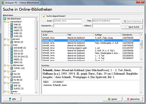 - Buchdaten aus Nationalbibliotheken und Online-Bibliographien übernehmen.